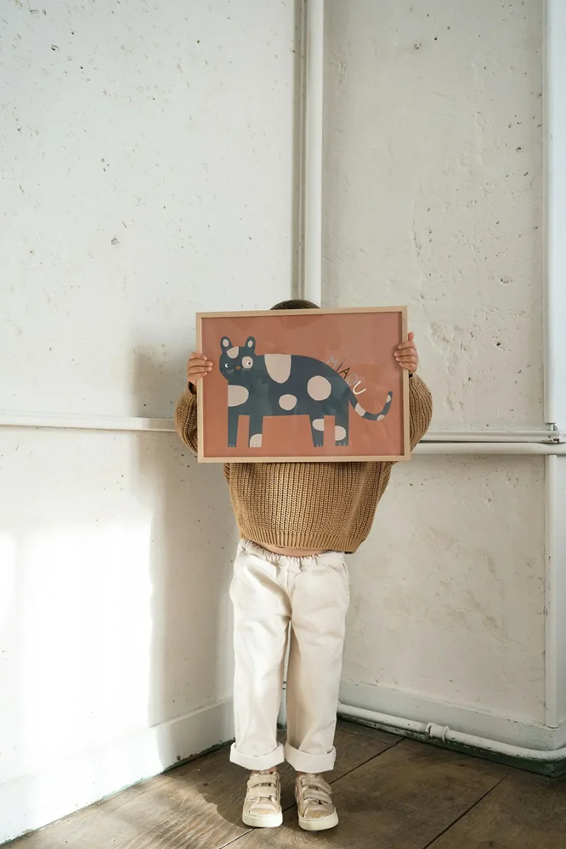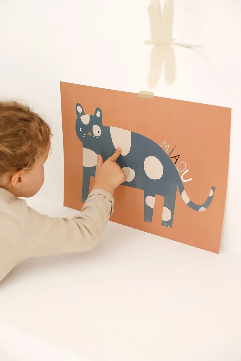 À accrocher au mur de la chambre de votre tout-petit ou bien à poser sur sa commode, l’affiche « Chat » ajoute une note de fantaisie tout en délicatesse.