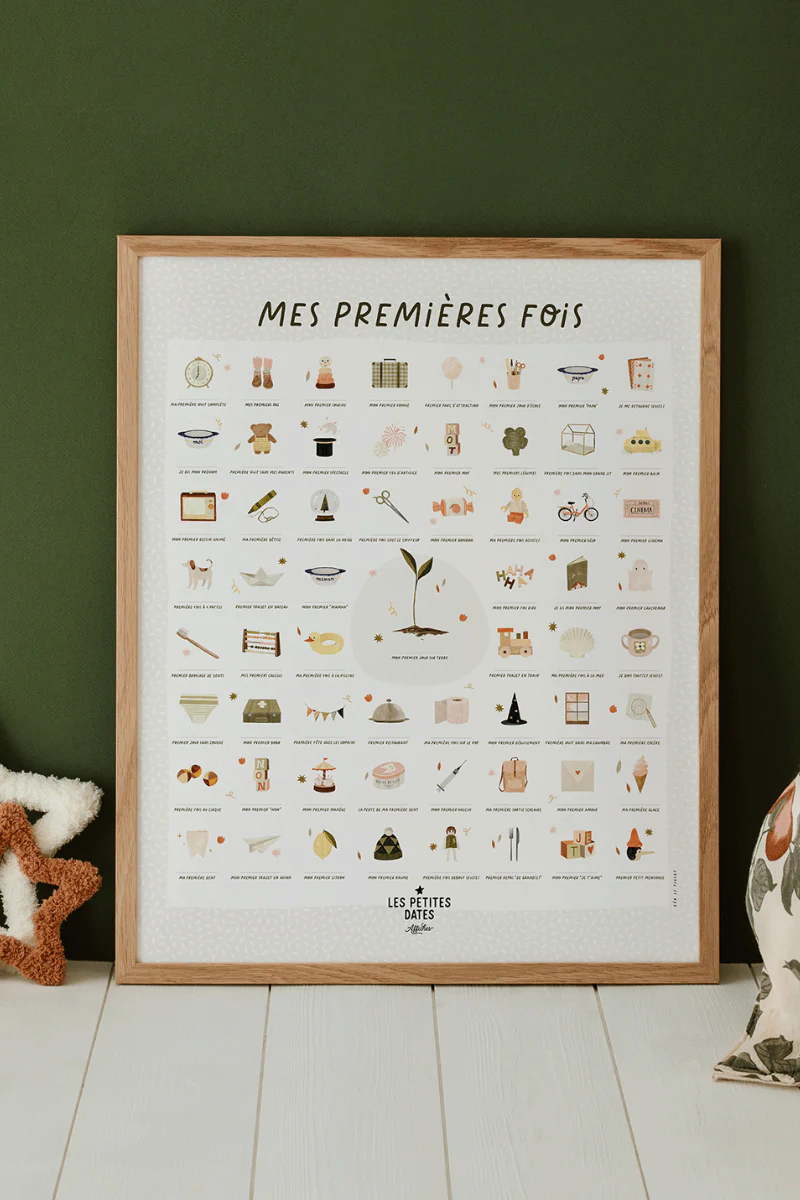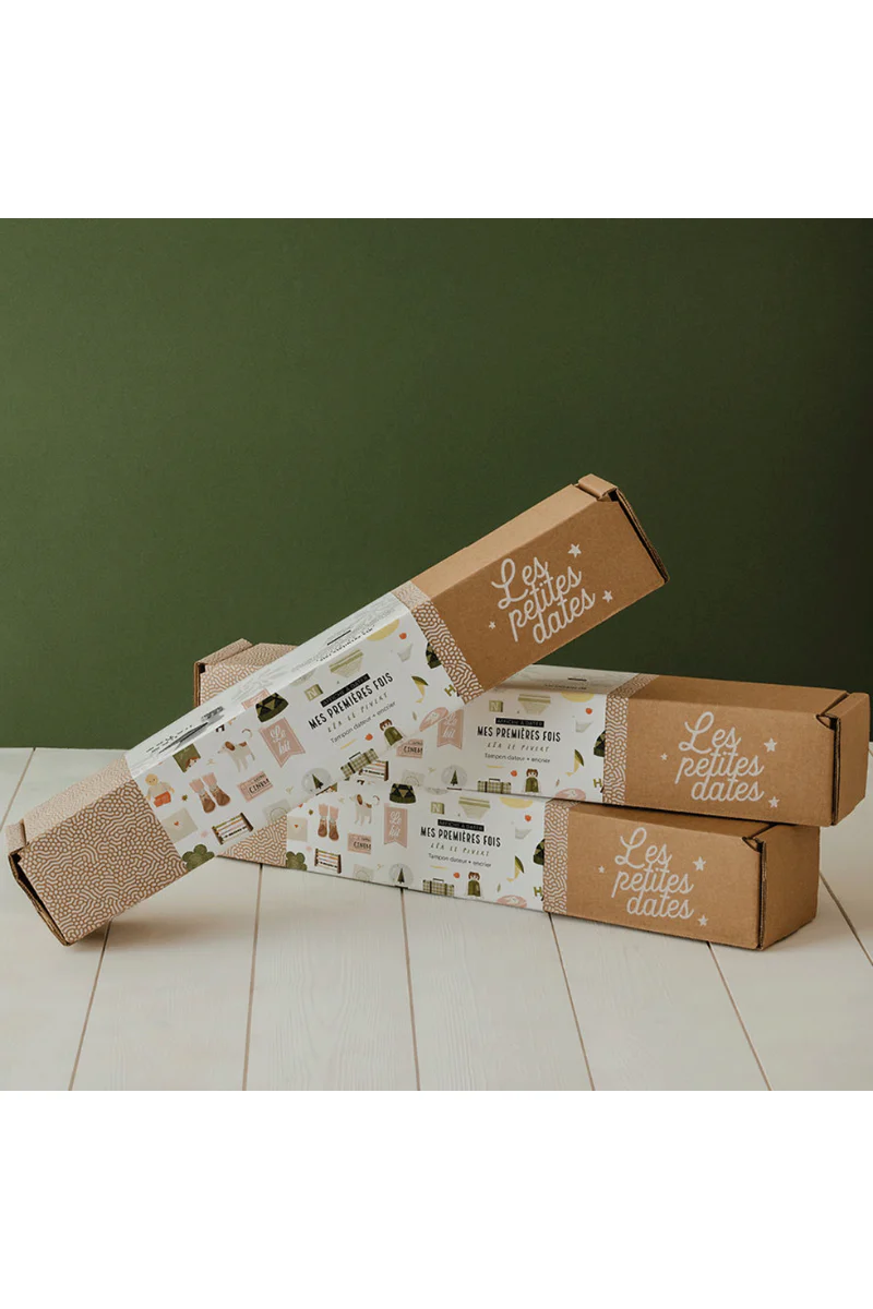 Gardez toutes les étapes de votre bébé en tête grâce à l’affiche Mes première fois. Il s’agit de noter les 61 premières fois de votre bébé telles que son premier brossage de dents, son premier trajet en avion ou sa première colère ! Cette boite comprend une affiche, un dateur et un tampon encreur, un cadeau de naissance idéal.
