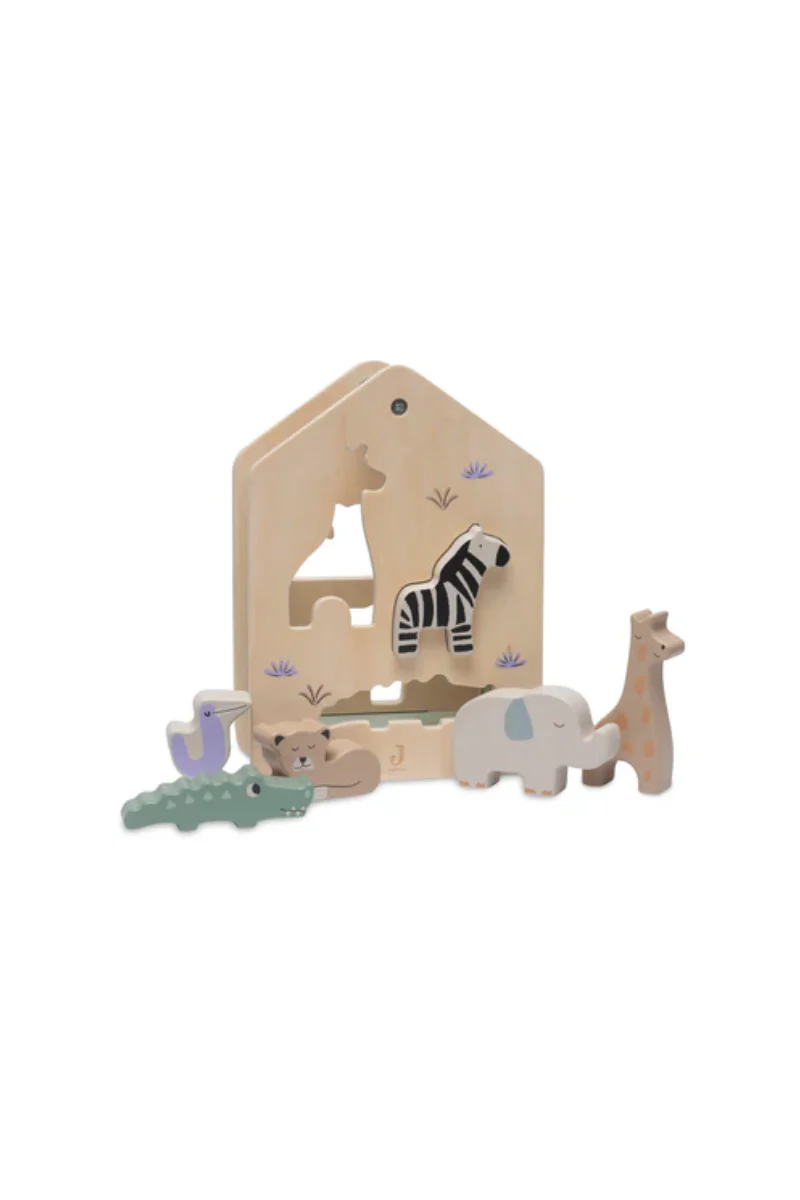 Faites en sorte que votre enfant rassemble tous les animaux de la jungle dans cette amusante maison en bois et passez des heures d’amusement. Les 6 animaux ne peuvent entrer que par leur propre compartiment, ce qui représente un véritable défi pour votre enfant.