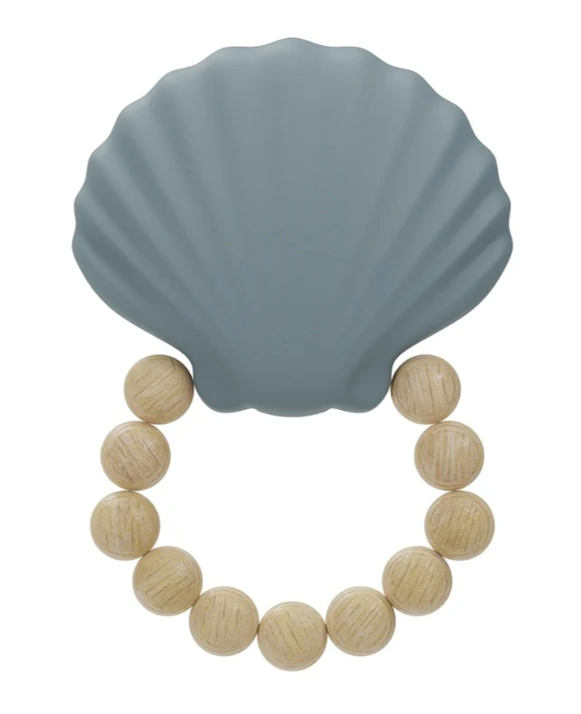 Anneau de dentition en silicone avec des perles en bois.