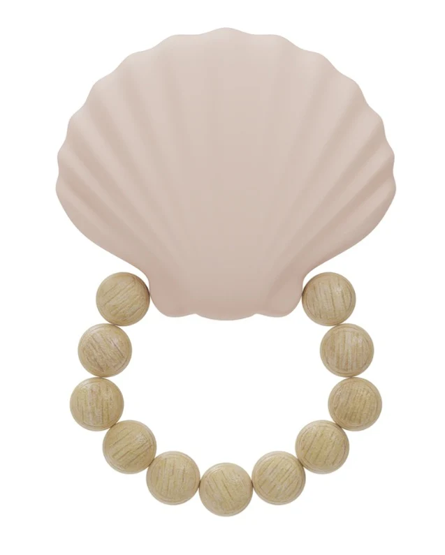 Anneau de dentition en silicone avec des perles en bois.