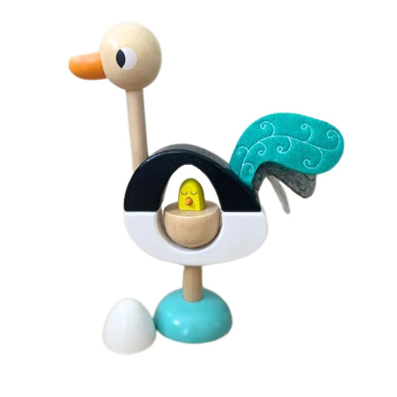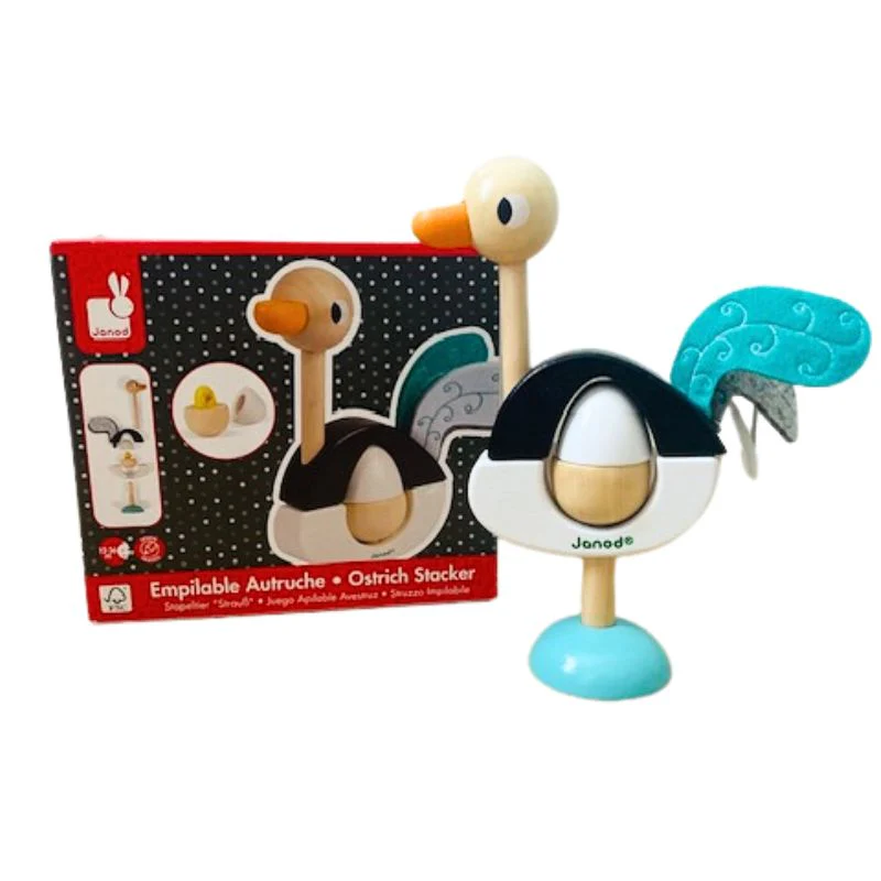 Jouet d’éveil avec 6 grosses pièces à empiler pour recréer une magnifique autruche.