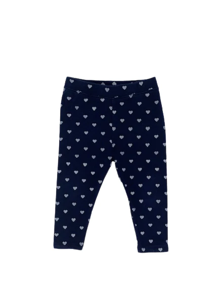 Legging marine imprimé cœurs argentés