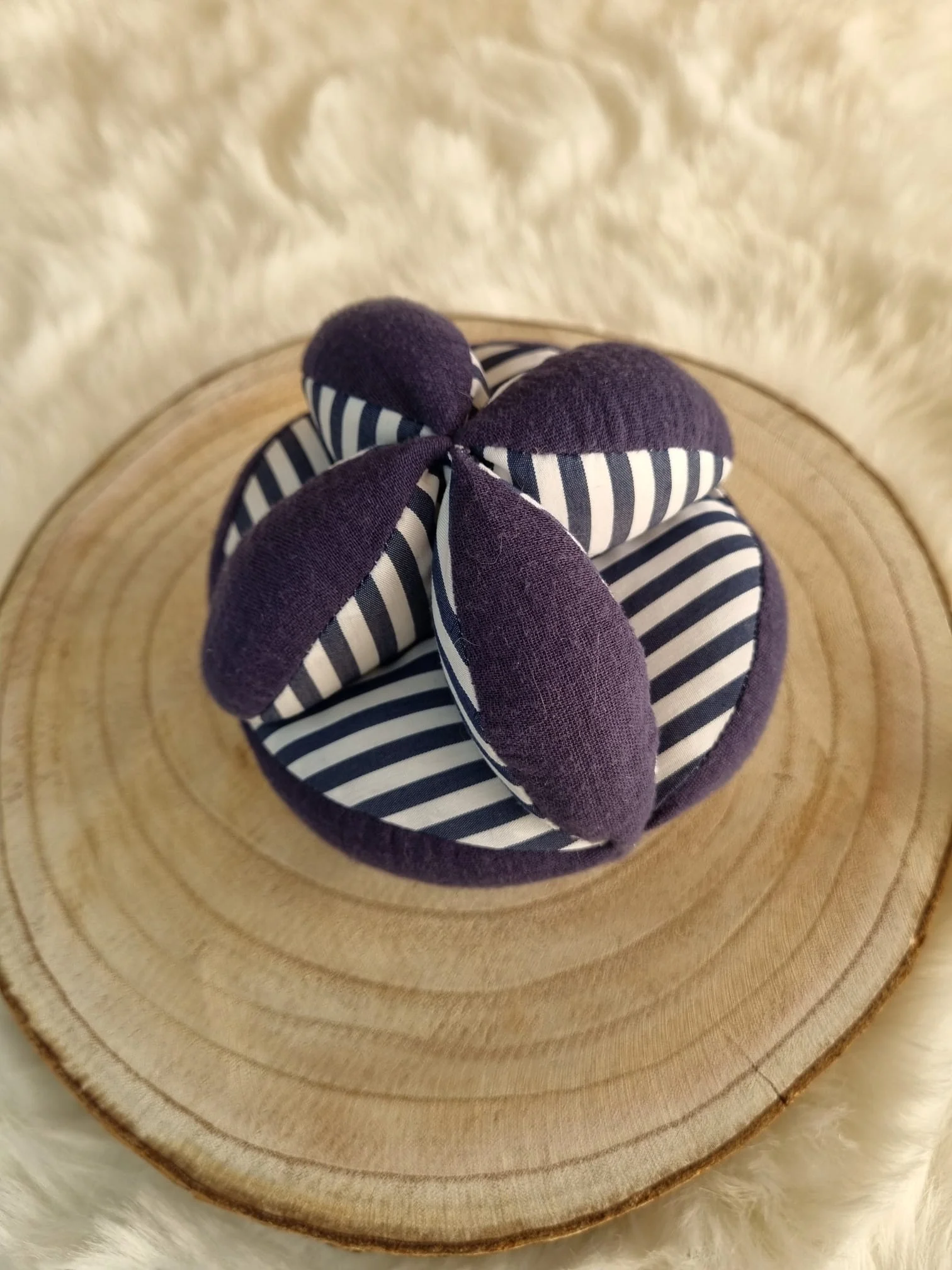 Fait main dans mon petit atelier avec soin, dans des matières douces, adaptées aux tout-petits. Chaque balle est unique, comme chaque bébé.