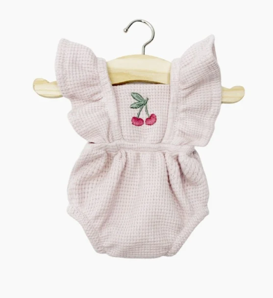 Barboteuse rétro Lou en maille nid d’abeille avec broderie pour poupées Minikane 34 et 37 cms.