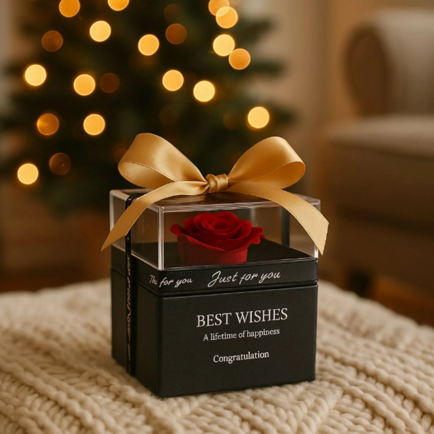 Flore attendait son premier enfant quand son mari lui a offert ce coffret pour leur anniversaire de mariage. Le soir, elle a placé la rose éternelle sur sa table de nuit. Chaque matin, en se réveillant, cette vision lui rappelle la beauté de cette nouvelle vie qui grandit en elle.