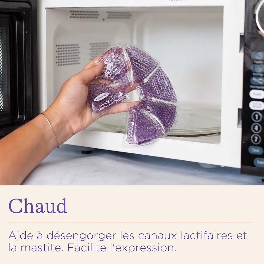 Ergonomiques et réutilisables, les coussinets 3 en 1 sont fournis avec leur étui douceur pour se glisser confortablement dans votre soutien-gorge. Ainsi, ils soulagent les gênes pouvant parfois être causées par l’allaitement, comme par exemple les mastites ou les engorgements. Les coussinets ne contiennent ni BPA, ni BPS, ni latex et s’adaptent à tous les tire-lait afin de décongestionner les canaux et ainsi faciliter l’écoulement pour réduire le temps d’extraction du lait.