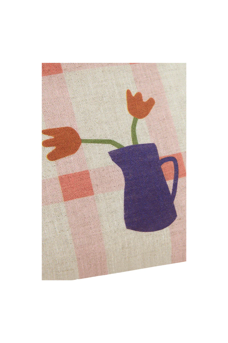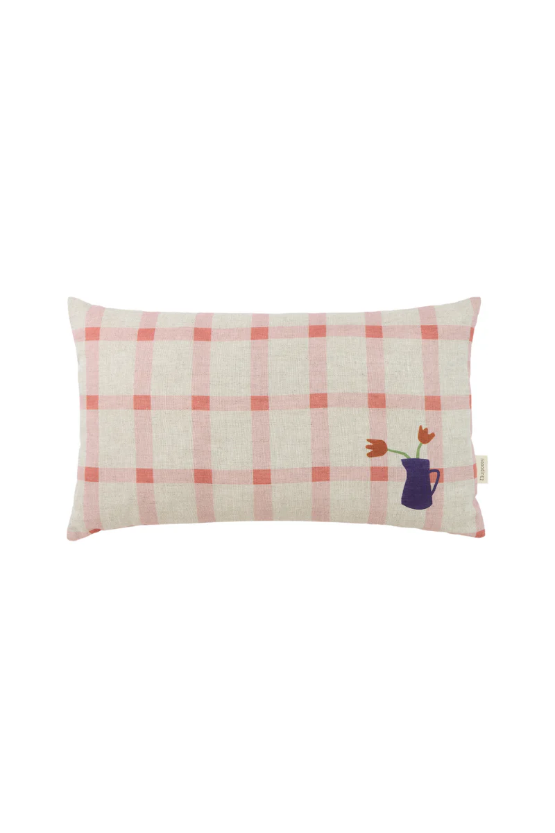 Coussin rectangulaire en lin français « Vibes » – Tulipes roses à carreaux | NOBODINOZ