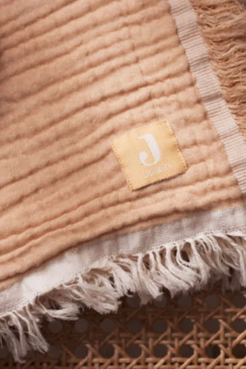 Créez un environnement de sommeil apaisant et confortable pour votre petit avec cette couverture rose pâle en gaze de coton de chez Jollein. Ses petites franges sur les côtés lui ajoutent un certains charme.