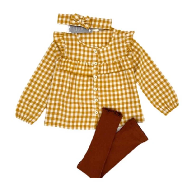 24-36 mois Ensemble chemise à carreaux, legging en maille côtelée et bandeau pour les cheveux Neuf avec étiquette