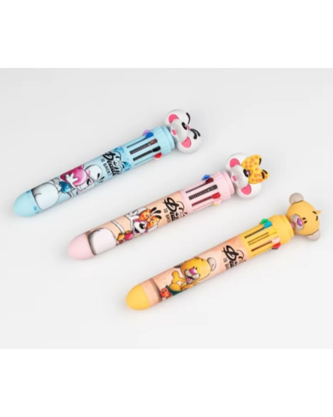 Grâce à ses10 encres colorées (bleu, rouge, vert, rose, violet, orange, jaune, turquoise, noir, marron), ce stylo multicolore permet de passer d’une couleur à l’autre en un clic. Parfait pour écrire, souligner, dessiner ou décorer tes carnets avec style.