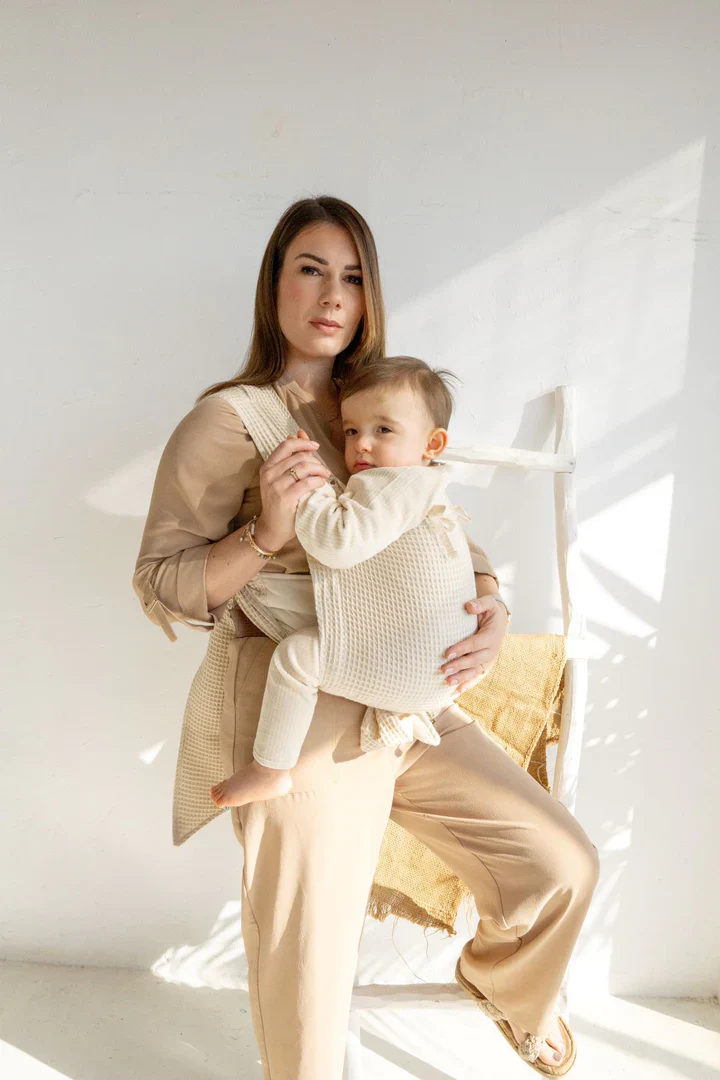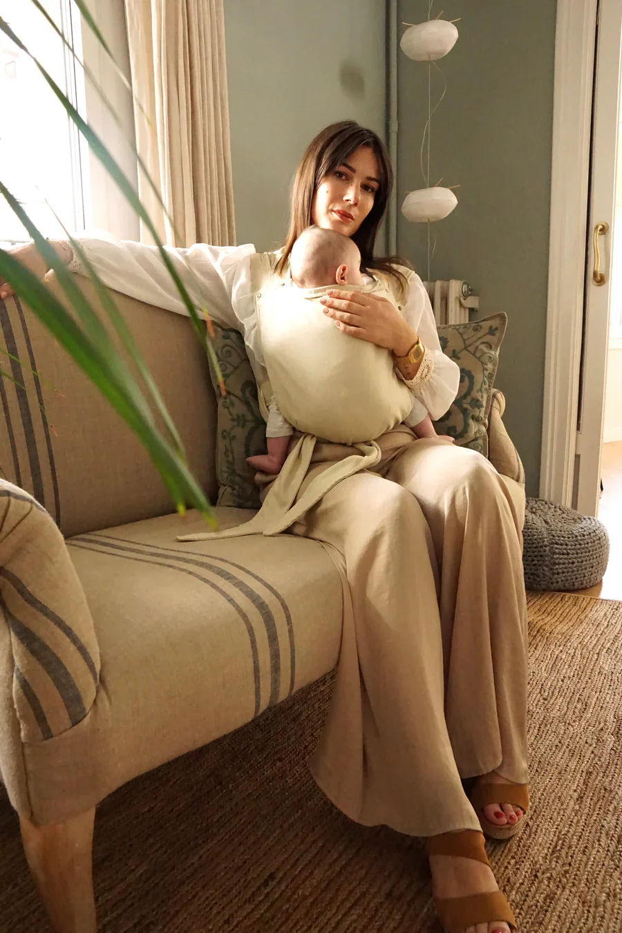 Un porte-bébé canon sans aucune matière plastique. Il s’ajuste au niveau de l’assise et du maintien de la tête de votre bébé pour respecter sa physiologie.