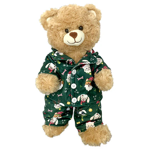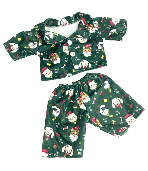 Pyjama de Noël vert sapin avec motifs pour peluche 40 cm Pour de moments magiques et uniques, habillez votre peluche avec la tenue de votre choix parmi une large sélection de vêtements.
