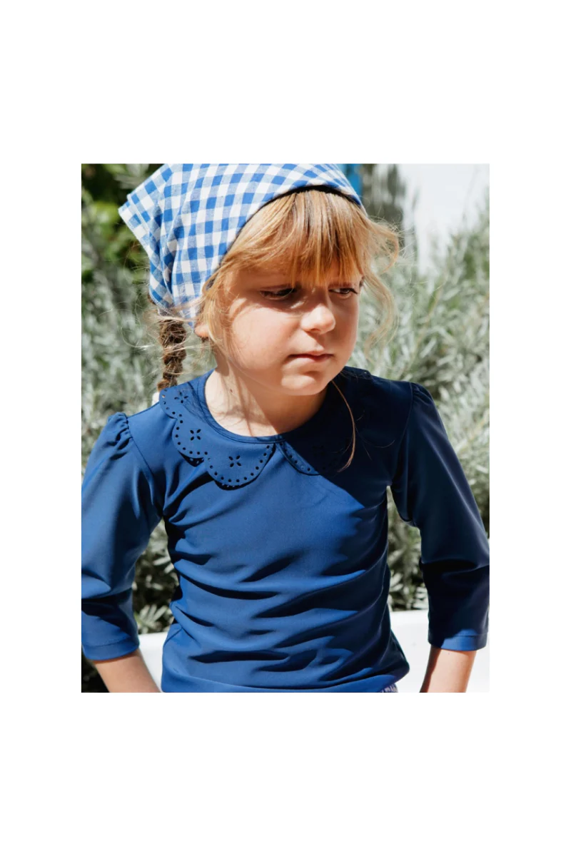 Le haut anti-UV Valentine se distingue par son élégance intemporelle et ses détails raffinés. On craque pour son col Claudine ajouré et ses manches légèrement bouffantes qui apportent une touche délicate au vestiaire de plage.