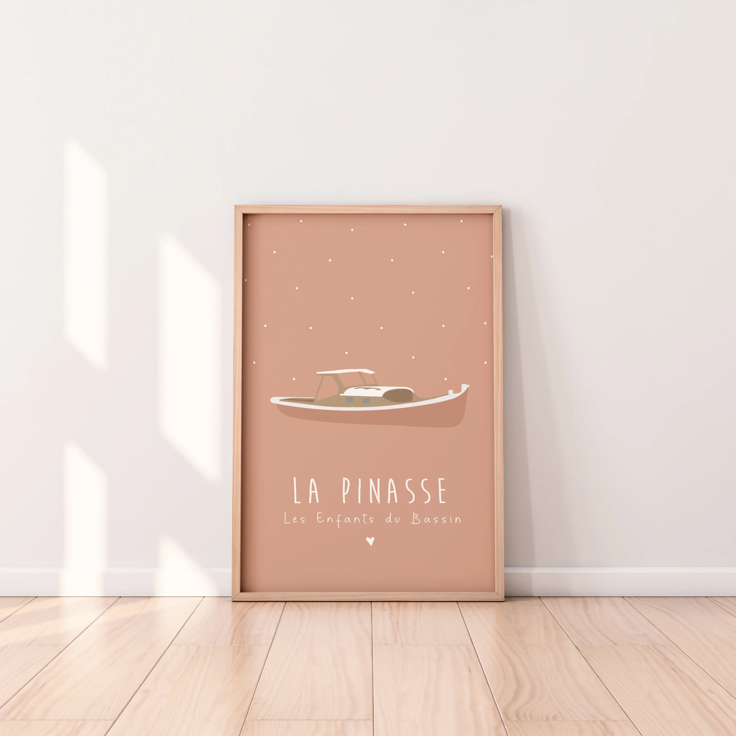 Les Enfants du Bassin vous font découvrir l’affiche « La Pinasse », une illustration douce et minimaliste d’un des emblèmes de notre joli Bassin. Elle nous rappelle les balades en bateaux, les couchers de soleil aux pieds des Cabanes Tchanquées, et les dégustations d’huitres.