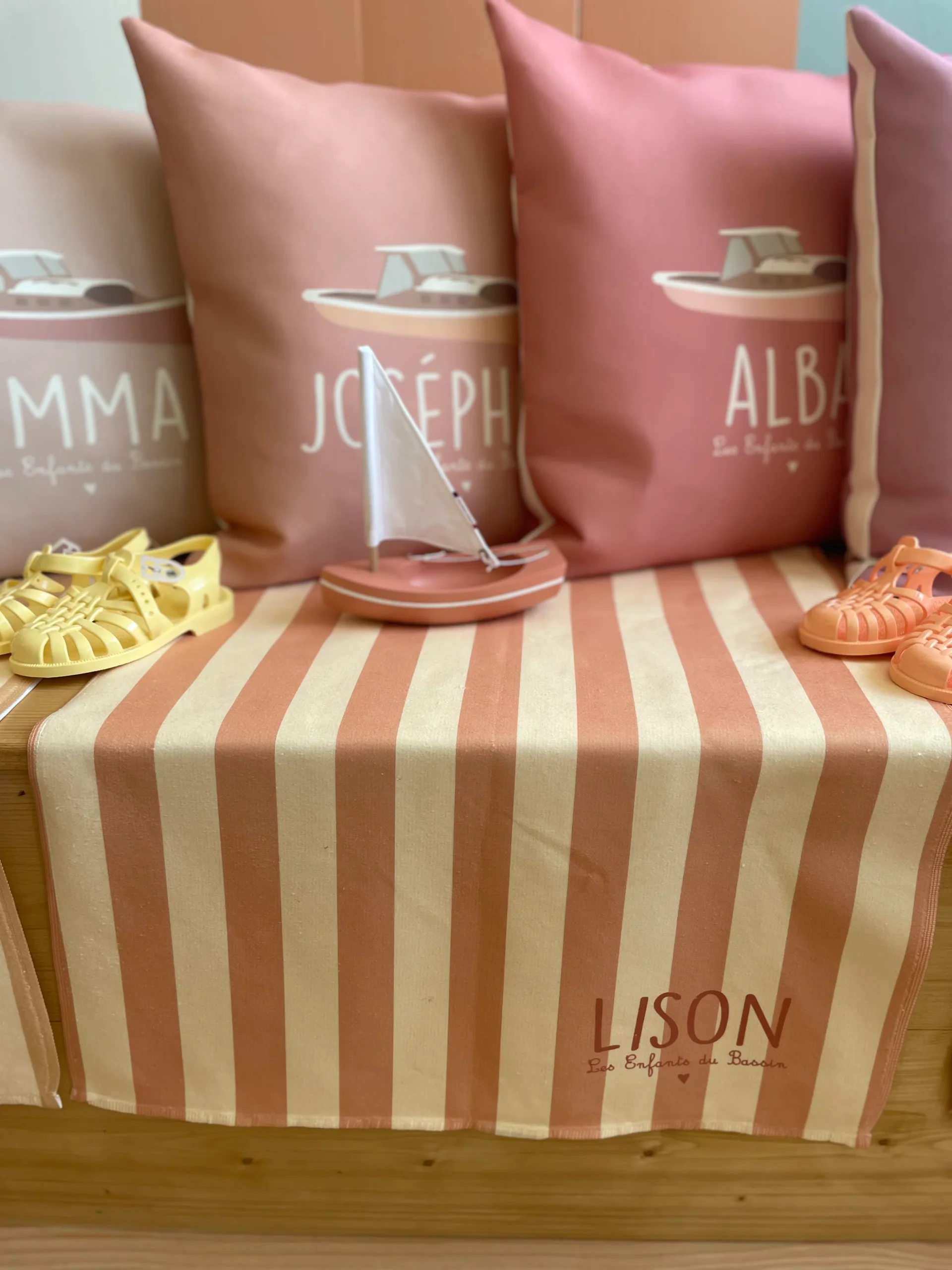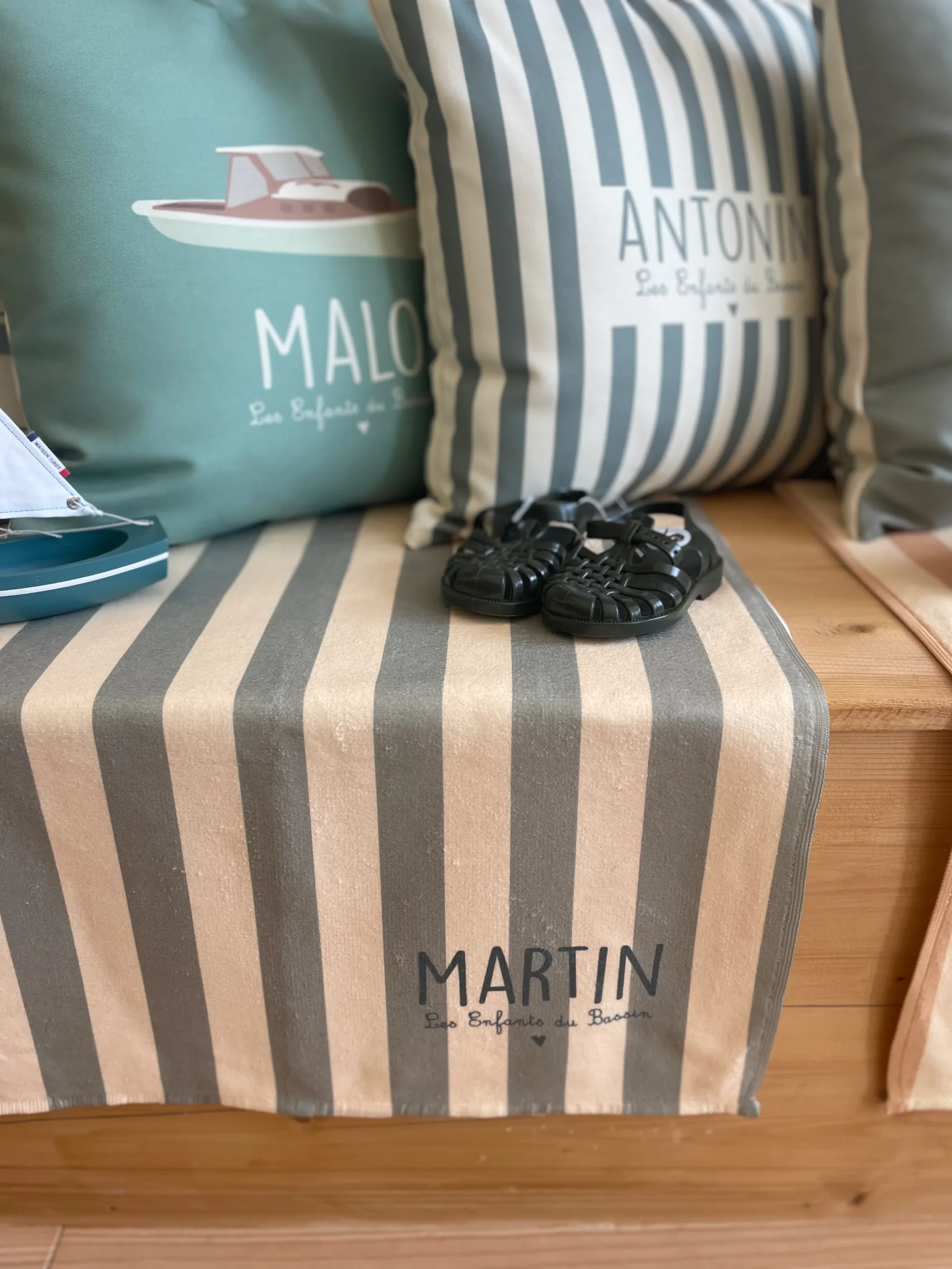 Délai de fabrication : 2 à 4 semaines Personnalisez votre drap de bain pour un été coloré ou un cadeau original et tout doux ! 3 tailles différentes (enfant, ado, adulte) Composition : Côté velours 100% microfibres en polyester recyclé Côté éponge 100% coton Créé sur le Bassin d’Arcachon – Fabriqué en Europe