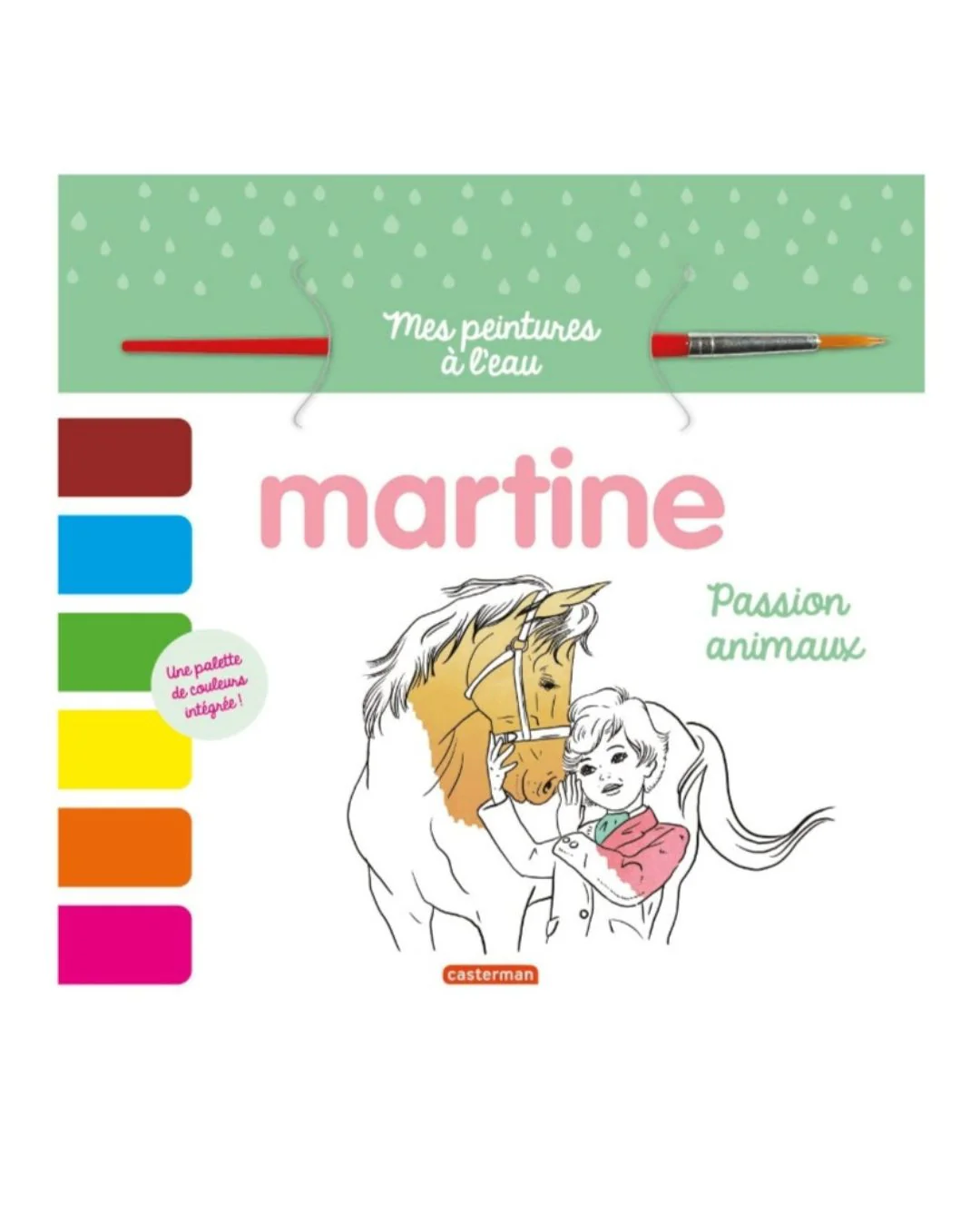 Choisis ton dessin, humidifie ton pinceau avec de l’eau, frotte ton pinceau sur une couleur de la palette ; tues prête : à toi de peindre selon ton envie ! À la ferme, à la maison, au zoo… Martine adore les animaux. Amuse toi à peindre cochons, chevaux, lions, girafes et même Patapouf, le chien de Martine !