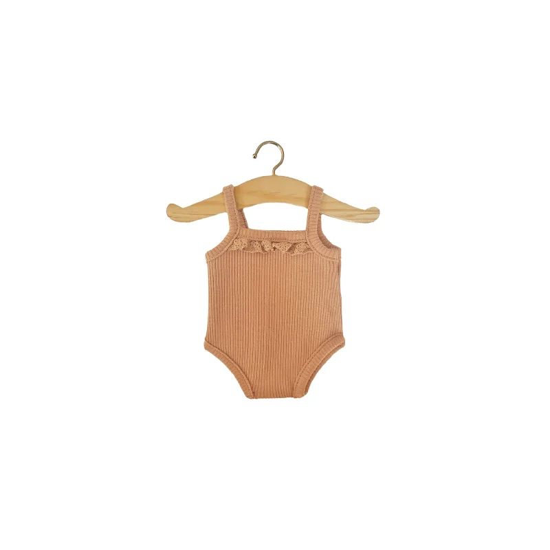 Collection Les P’tits Basiques, body sans manches en maille côtelée coloris cassonade Pour poupées et poupons 34 et 37 cm.