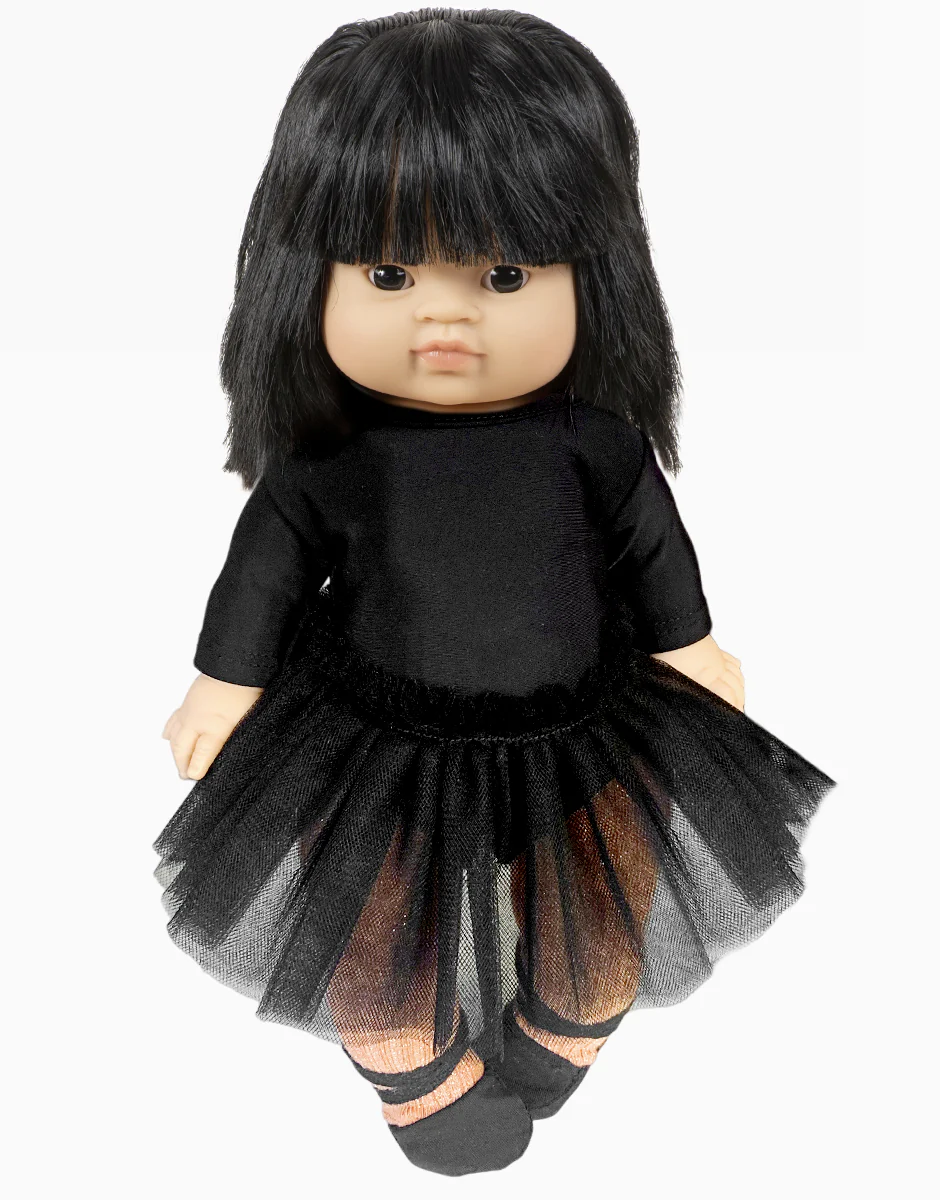 Ensemble Sorcière comprenant un top à manches longues noir, un tutu et des chaussons noir pour poupées