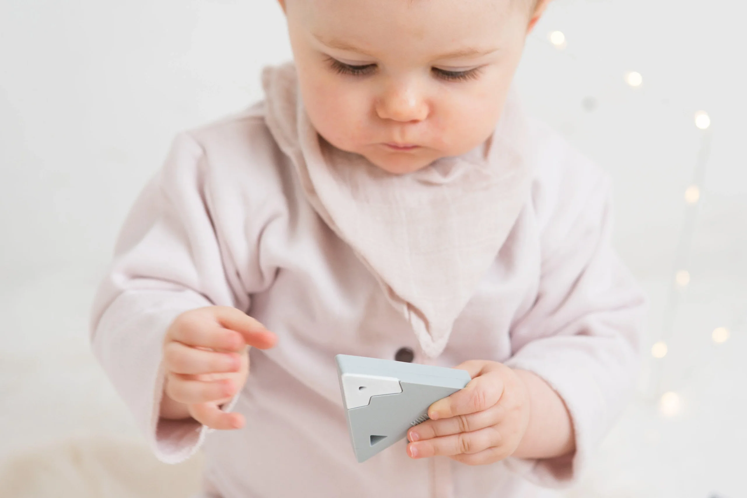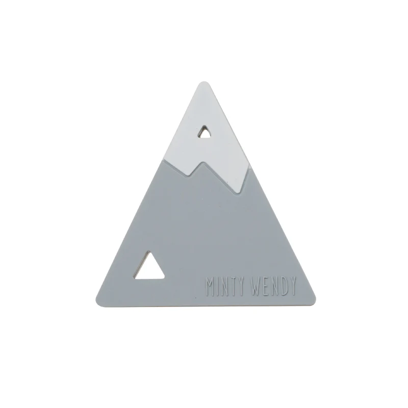 En forme de montagne pointue avec son sommet enneigé, L‘anneau de dentition Montagne de MintyWendy est bicolore. Il possède un design très sobre et des couleurs douces afin de plaire aux enfants comme aux parents. Pourvu de plusieurs reliefs et trous, l’anneau de dentition est facile à saisir par des petites mains et attire la curiosité de Bébé.