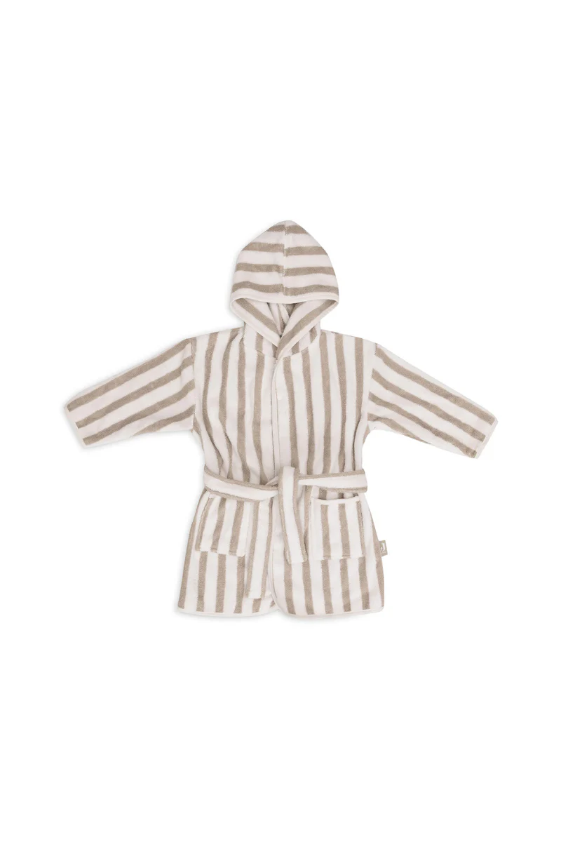 Joli peignoir rayé en éponge de chez Jollein qui est non seulement doux, mais aussi respectueux de l’environnement grâce à sa certification GOTS.