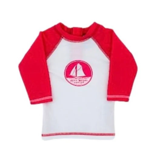 Tee-shirt de bain à manches longues anti UV blanc et fuchsia