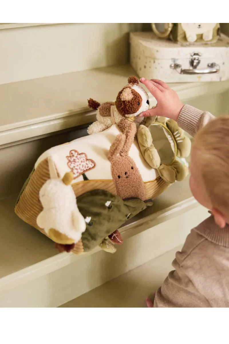 Ce joli triangle d’activités de la collection Tiny Park est un indispensable pour le parc de votre bébé. Conçu dans des matières ultra douces et texturées, le coussin est décoré de broderies joyeuses représentant un petit chien et un lapin, créant une ambiance ludique. Il est parfait pour stimuler la vue, le toucher et la curiosité.