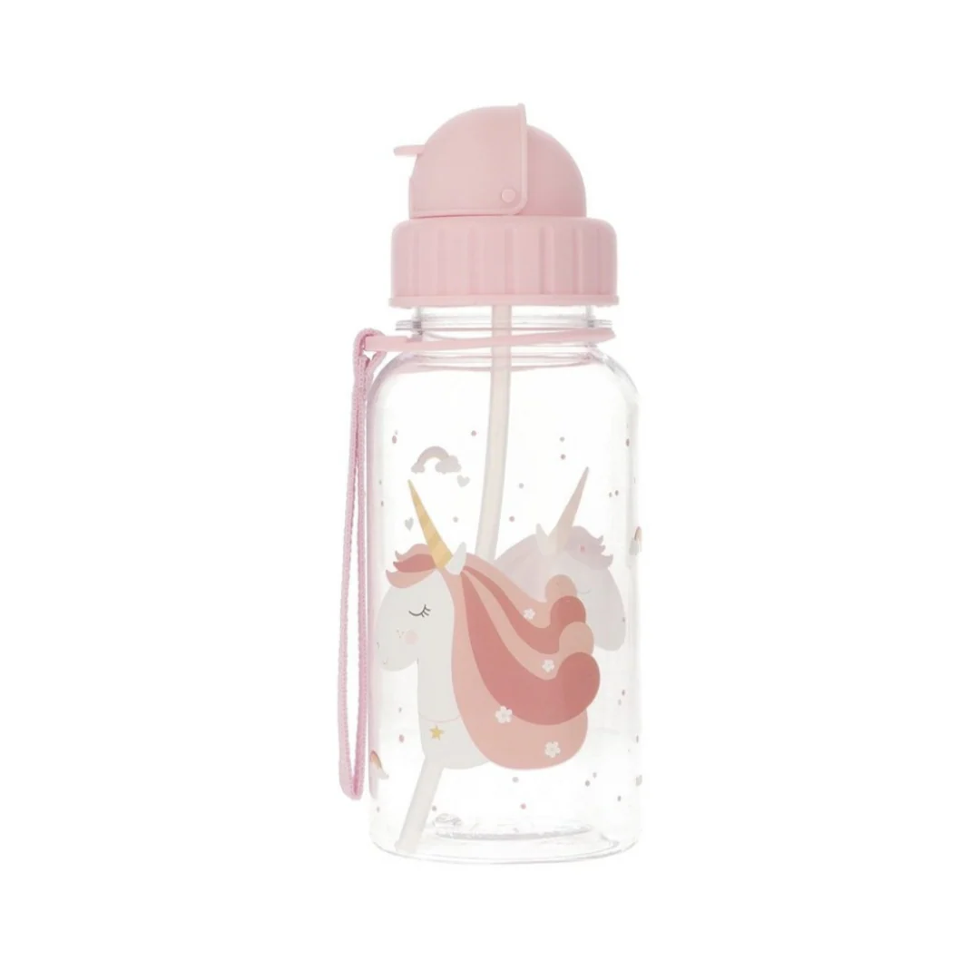 Gourde pour enfant en plastique Tritan de 500 ml légère, résistante et décorée de motifs amusants issus de la collection Magical Unicorn de Tutete. Elle est dotée d’une paille rabattable en silicone qui se déplie automatiquement lorsque vous ouvrez son capuchon, idéal pour que les enfants puissent boire confortablement sans renverser d’eau.