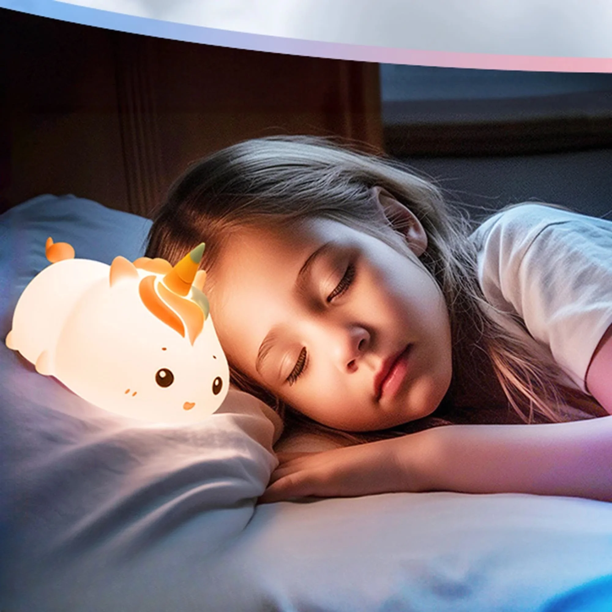 fille dort paisiblement veilleuse bebe licorne magique