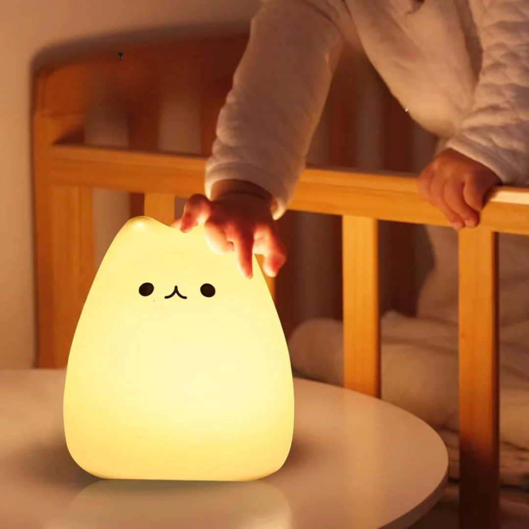 Imaginez un soir où votre bébé s’endort paisiblement, bercé par la douce lueur de sa veilleuse chat.