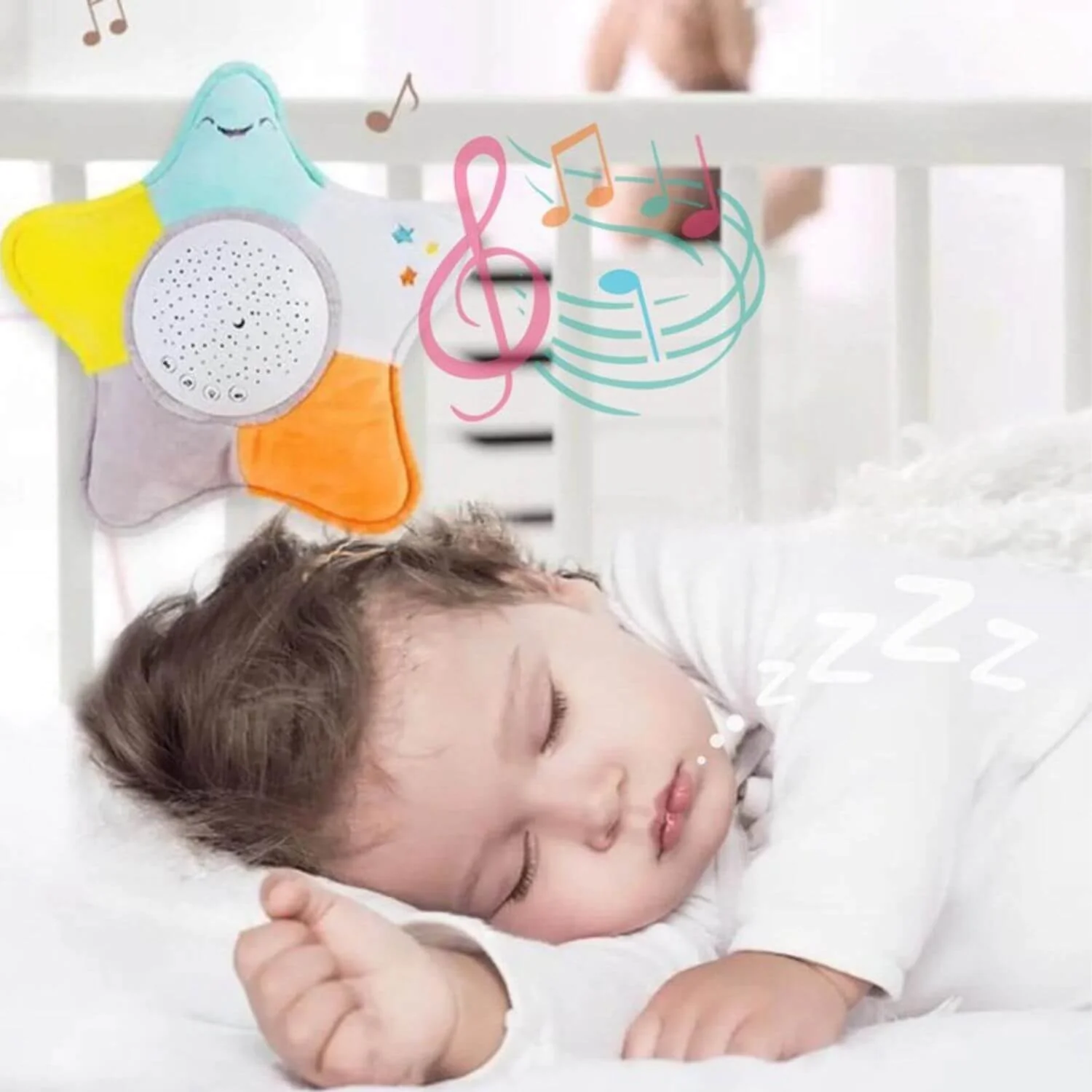 2. Projecteur de sommeil : Respect du sommeil de bébé, broderie fine préférée en coton très doux, projection de ciel étoilé de rêve/musiques naturelles.
