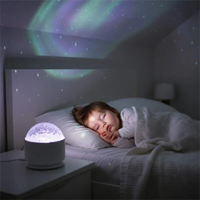 Ce petit appareil projette des aurores boréales qui captivent doucement l’attention tout en préparant au sommeil.