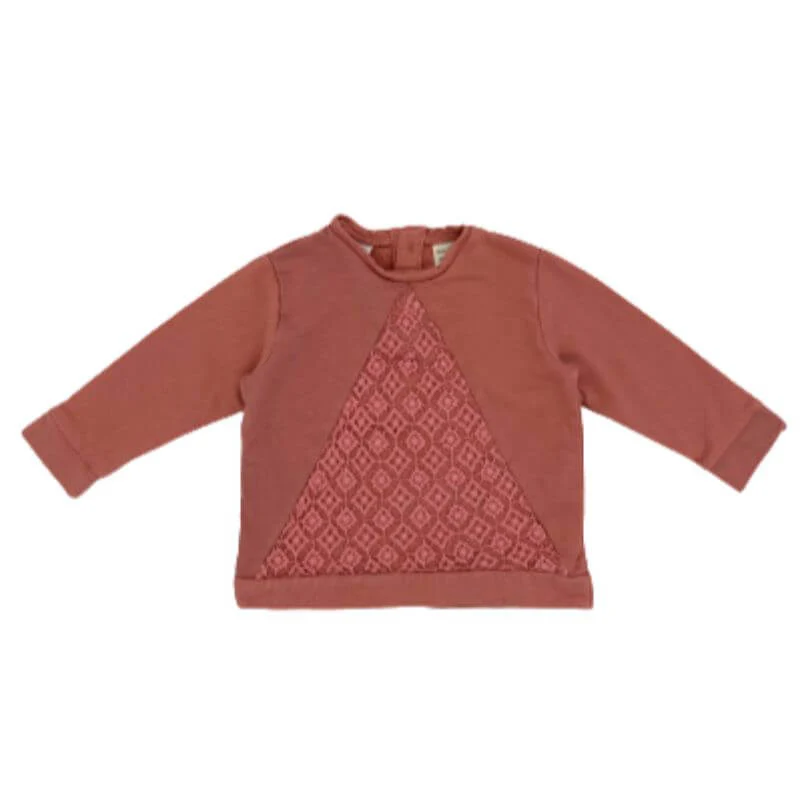 6-9 mois Sweat couleur vieux rose 100% coton Motif en broderie anglaise Ouverture boutonnée au dos En bon état, porté mais aucun défaut